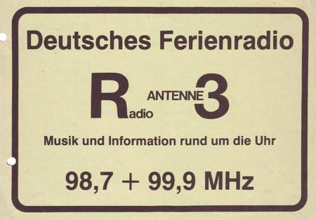 Aufkleber vom "Deutschen Ferienradio" - Radio Antenne 3 auf 98,7 + 99,9 MHz